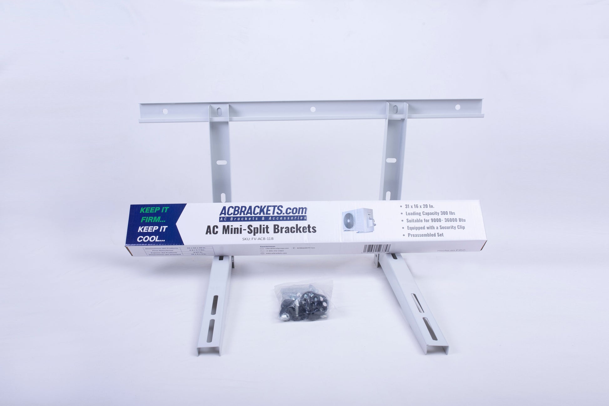 Wall mounting brackets for condensers. Can hold up to 3 tons (36k) condensers.